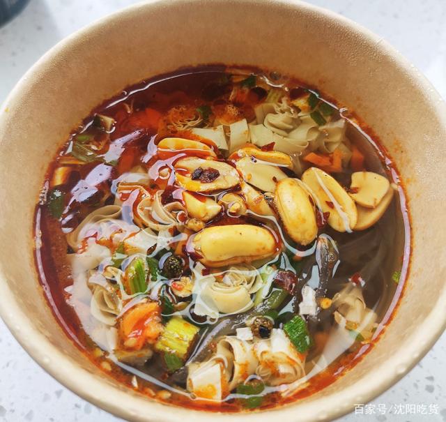 酸辣粉里面是深色的紅薯粉,豆皮、麻辣花生一放,酸辣過癮,在工作室加班的時候來一碗,別提多幸福啦!